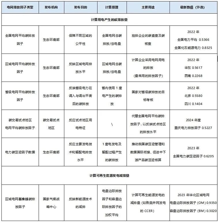 生态环境部、国家气候战略中心等部门基于不同核算目的,发布了全国、区域、省级等不同范围的碳排放因子。