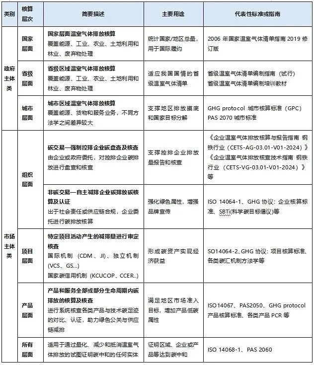 市场主体的碳排放主要基于企业行业数据,进一步可细分为组织层面、项目层面及产品层面等。